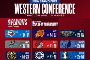 最新排名:湖人&掘金争西三 猛龙&魔术&76人抢最后一个直通名额!