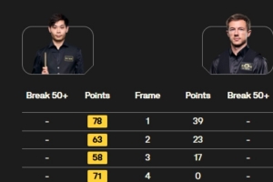 贺国强打出单杆138、57分,杰克·利索夫斯基打出单杆52、90分,贺国强6-3领先利索夫斯基结束第一阶段。