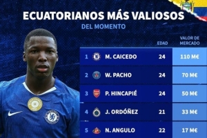 体育资讯4月18日讯 切尔西已经官宣同厄瓜多尔后腰凯塞多续约,《转会市场》也统计了厄瓜多尔球员身价情况,共计6人身价超1000万欧元。