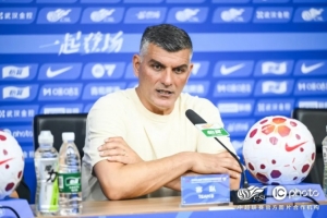 4月17日,成都蓉城主教练约翰·阿洛伊西出席赛后新闻发布会。