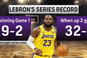 明日G2关键一战!当2-0领先时 詹姆斯季后赛生涯系列赛32胜0负